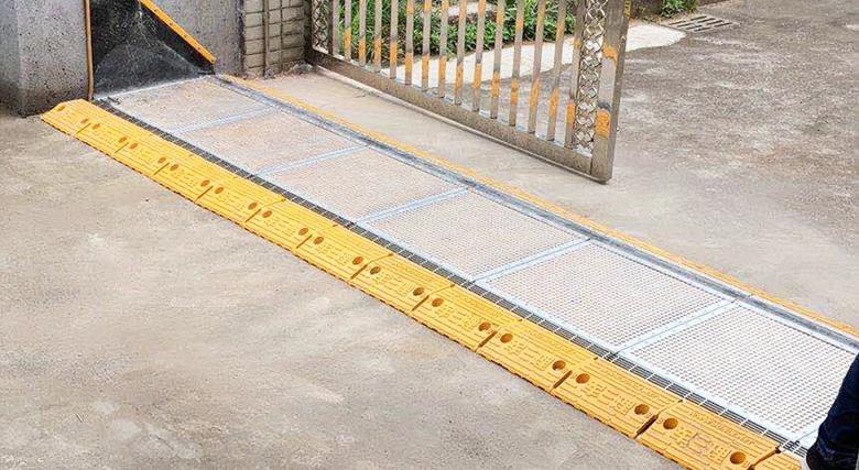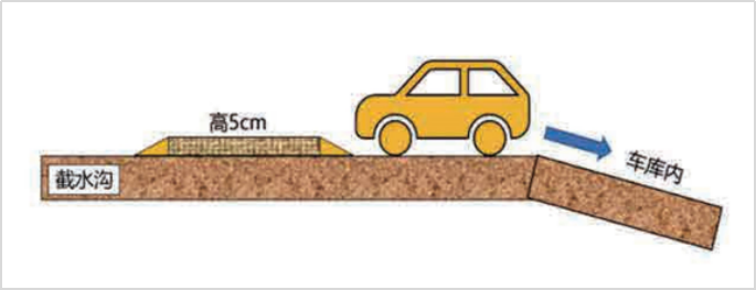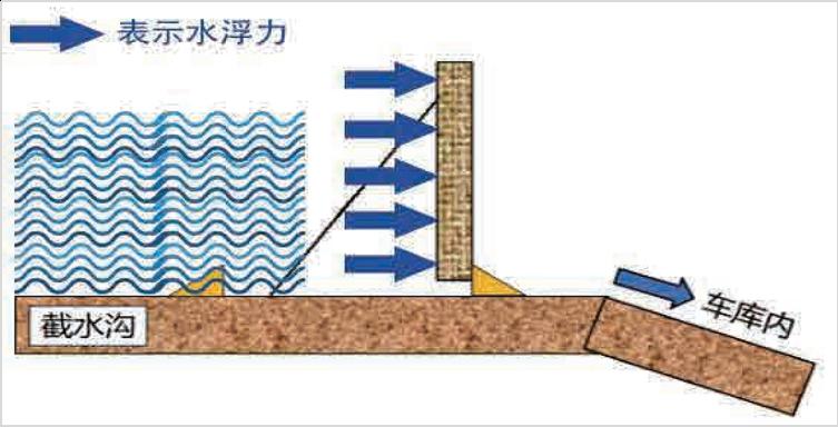 無水時,擋水板伏臥在地面框體上。車輛可以正常通行。